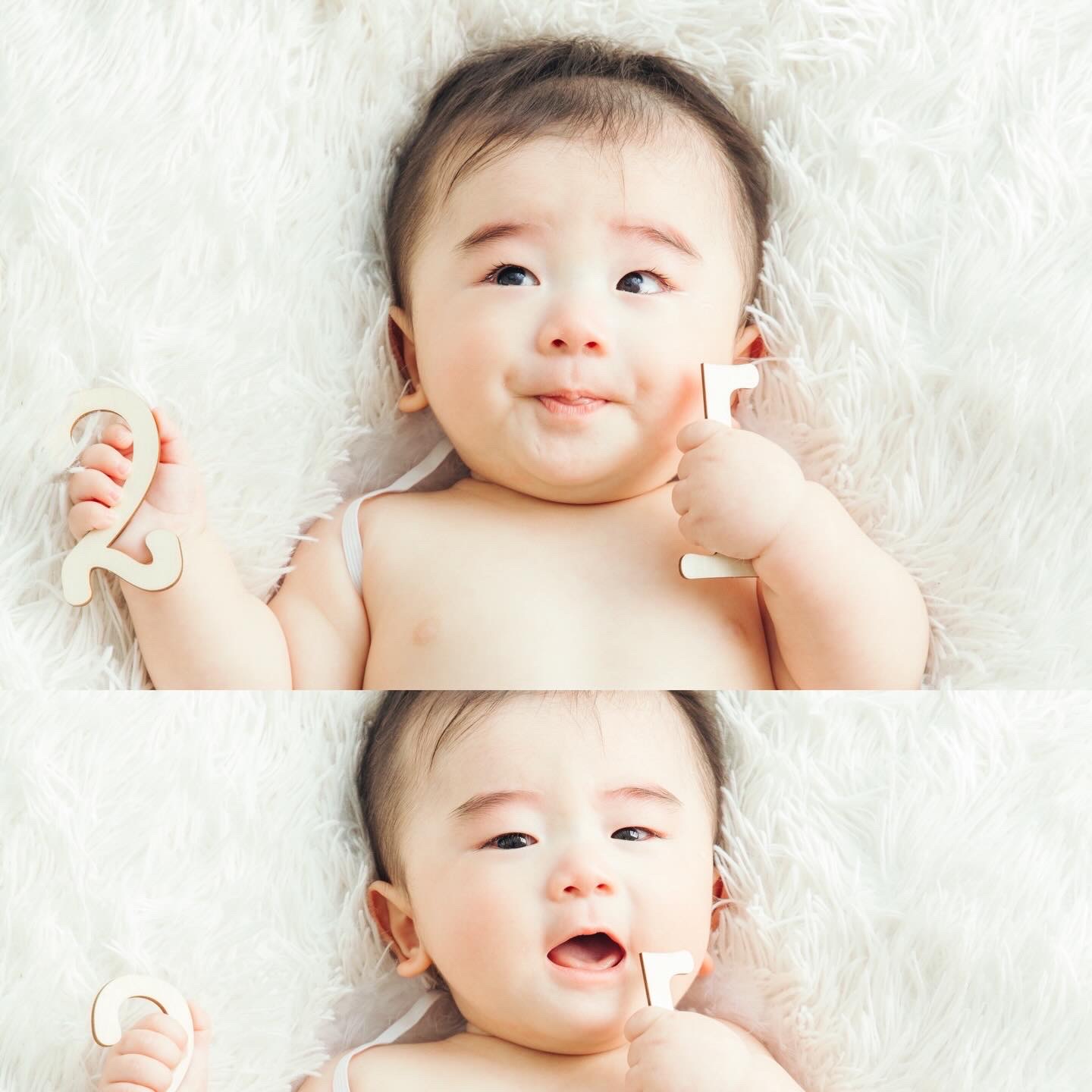 たくさん可愛いアイテムをご用意していただきました!最初はご機嫌でしたが後半は泣いてしまい、、ましたが泣いた姿も思い出ですね☆ツルツルお肌が可愛すぎます!